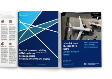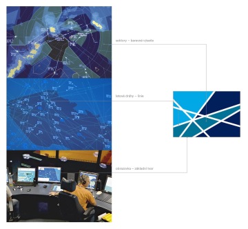 Bezpečnost leteckého provozu považujeme za odpovědnou a svým způsobem obdivuhodnou práci, která zajišťuje volnou výměnu informací, věcí a lidí. Letité logo letadýlka jsme nahradili letovým sektorem, který je otevřeným průsečíkem drah, odletů a příletů. I jeho barvy, inspirované obrazovkou radaru, reprezentují oblohu v neuzavřeném čtyřiadvacetihodinovém cyklu různých denních i nočních dob. Nové logo taky nabízí mnoho možností, jak svoje tvarosloví (dráhy, výseče, barvy) promítnout do vizuálního stylu – samo už je vlastně vizuálním stylem, který snadno pokryje různé formáty, od klíčenky po balón.