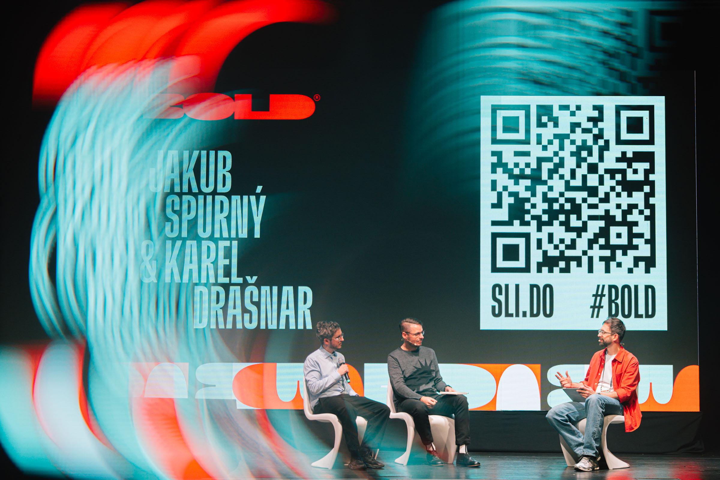 Jakub Spurný přednášel na konferenci Brno Bold o Vizuální identitě státní správy po které následovala diskuze s Karlem Drašnarem, koordinátorem implementace.