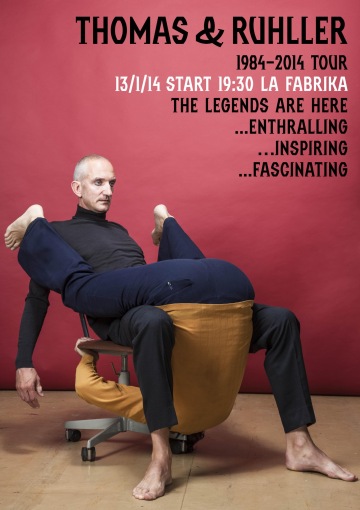 Jak je možná zřejmé z jejich zralého a uvážlivého uměleckého projevu, ale zejména z kalendáře, Thomas & Ruhller svým vrávoravým krokem příští rok narazí na jevištní třicítku. V životě legendárního ekvilibristického dua to ale neznamená jen konečně se odstěhovat od rodičů a naučit se ovládat pračku, nýbrž především další mezník na ose vlastního principu pohyb-čas-nekonečno. První představení jubilejního roku se uskuteční v holešovickém prostoru La Fabrika už 13. ledna.