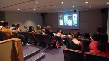 Život štěstí překvapení. Aleš Najbrt a Zuzana Lednická představili práce studia studentům designu této protinožské školy. Překvapivě nikdo z nich nebyl nohama vzhůru.