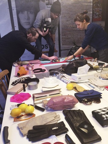 A new, 20-foot-long, printed-on-aluminum photo by Dušan Tománek dominates the new restaurant interior of Pastacaffé in Vězeňská Street in Prague by the architect Tereza Froňková. Both the ambitious dimensions and the subject matter build on Pastacaffé postcards with items suggesting unexpected encounters, over-the-top as some visits of Pastacaffé are. Besides luxury brands’ "nécessaire", the things guests can leave in the cafe on the table are also portrayed by a guitar we got from the photographer Václav Jirásek when opening a new studio space or the Grand Prix Aleš Najbrt won at the Brno Biennial in 1996. Shoes: Gianvito Rossi, perfume: Brecourt Ambre Noir, gloves: Local Icons – Napa, ring: Henri Bendel, Grand Prix XVII. Brno Biennial, watch: Rolex, creamer, perfume: Straight to Heaven by Kilian, glasses: Cutler and Gross, pen: Balmain, camera: Yashica T4 Super, guitar: DIY. Styling by Michal Nanoru and Lucie Trnková.