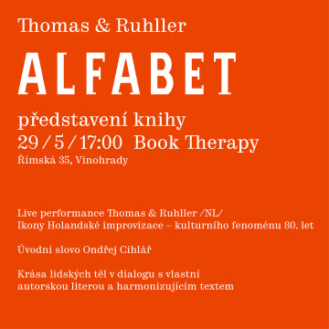 The book ALFABET by the Dutch performance duo Thomas & Ruhller has just been published. These world-famous artists decided to represent all the letters of the alphabet with their bodies, their own writing and short texts. In 1926, Karel Teige, Vítězslav Nezval and the dancer Milča Mayerová attempted something similar with their Alphabet.