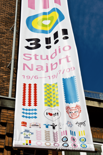 The first part of the exhibition reflected the work on the new logotype and visual style of the Silesian capital Ostrava. We showed part of the style guide, the past and the future of the city in a 12-meter long illustration or 19 kinds of buttons with exclamation marks. The second part of the exhibition was 54 film, theater and exhibition posters, books and our label mojemoje.