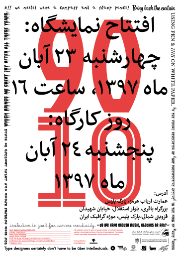 The Typo 9010 exhibition at the Iranian Museum of Graphic Design in Tehran features 50 typographic posters based on the 2015 book of the same name. The exhibition was opened by the author of the books‘ concept Zuzana Lednická and Vladimir 518.