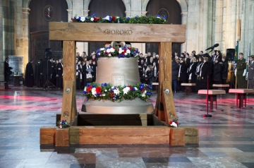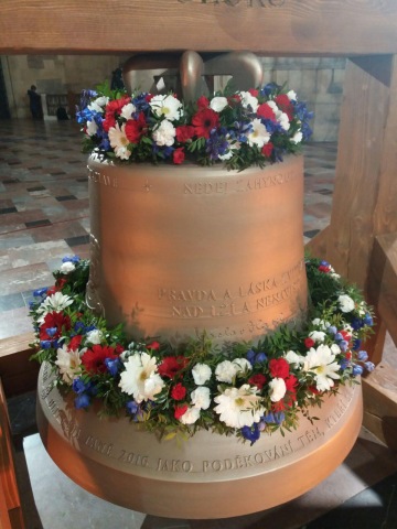 Almost all the church bells above Prague sounded on Sunday to welcome the first ringing of the bell Václav, newly placed in the St. Havel church in the Old Town. The bell, which was funded by a public fundraiser organized by the Charter 77 Foundation in honor of the 80th anniversary of the late President Václav Havel’s birth, replaced the predecessor of the same name missing from the church after the world wars. The studio Olgoj Chorchoj designed Václav and the typeface Santa Croce by František Štorm applied Aleš Najbrt, Zdeněk Trinkewitz and Marek Pistora.