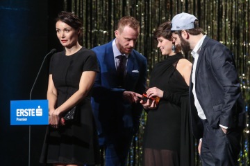 On Saturday at the ceremony at Prague’s Estates Theatre, the crème de la crème of Czech creative industry came together for the tenth time to hand each other the Czech Grand Design awards. First photographs by Václav Jirásek for the identity of the 50th Karlovy Vary International Film Festival finished second in the category Photographer of the Year. And then our bright star Zuzana Lednická along with Tomáš Brousil, Petra Dočekalová and Radek Sidun went on stage to accept the Graphic Designer of the Year award for their book 9010 — Czech digitized Typefaces 1990—2010. We are delighted and we hope to find out how the bottle of perfume on a glass pedestal will be divided between the fab four.
