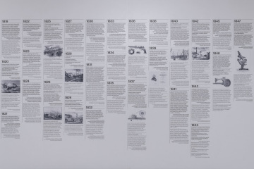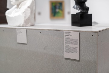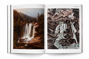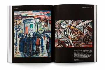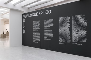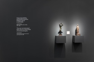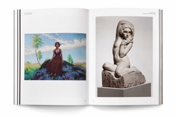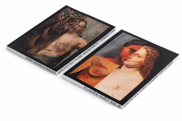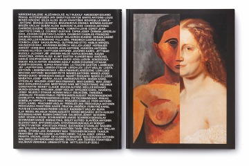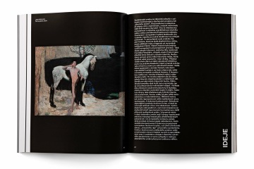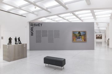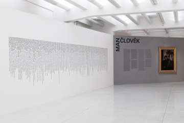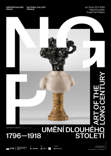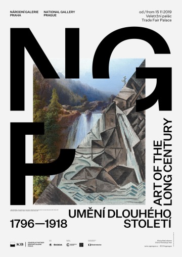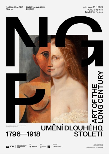 The graphic design of the permanent collection of the long 19th century in the National Gallery in Prague closely follows curatorial and architectural concepts. The gray partitions of the gray walls in Veletržní Palác are complemented by a simple typographic solution with texts overflowing around the corners in a fashion true to the title of the exhibition. The sections (Man – World – Ideas and Architecture – Monument – Tombstone) are then mirrored in the three versions of the posters. Vertically, horizontally and diagonally, works like Picasso's portrait of a girl and the same motif by a Czech painter Josef Mánes are confronted – just as in the exhibition, which, rather than singular visions of individual national artists, accentuates relationships. The same principle on the covers of two language versions of the exhibition guide is rounded by the book edge with chapter titles, symbolically returning to the uniting flow of text in the exhibition.