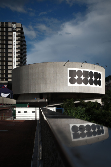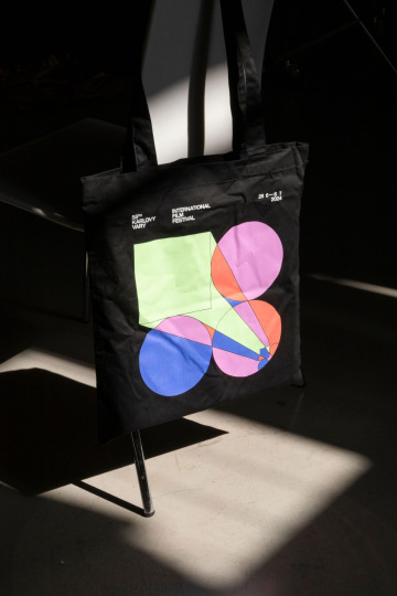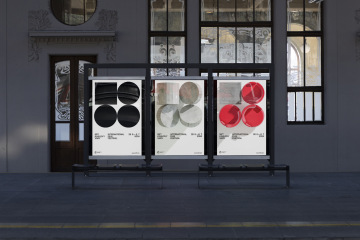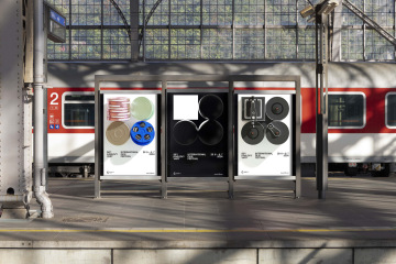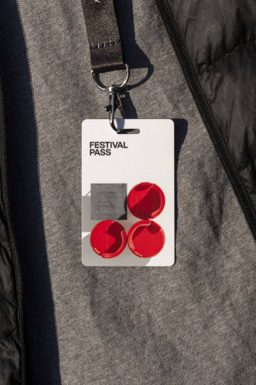 This year we worked again with the number of the annual festival. This time the inspiration was a simplified floor plan of the Hotel Thermal, which we used to create an abstract black and white code of one square and three circles.