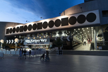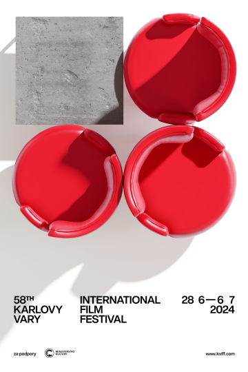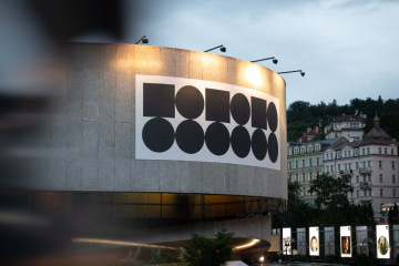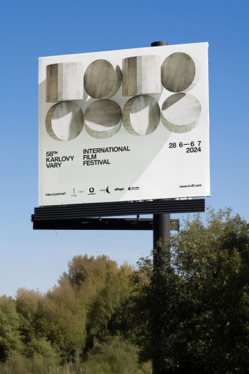 Maximum simplification was the basis for its further development. We transformed the symbol into iconic objects from the film world and the Karlovy Vary festival. Brutalist concrete, chairs from the Machonin's couple, boxes for film strips, an old camera, a projection from the cinema hall, LED screens, spotlights and film lenses. Simply a lot of different emotions on the floor plan of a fifty-eight.