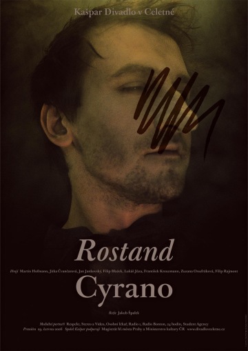 The classical typography on the background of Cyrano’s dreamy look with scrawling nose?Does it somebody on the street or Cyrano himself?