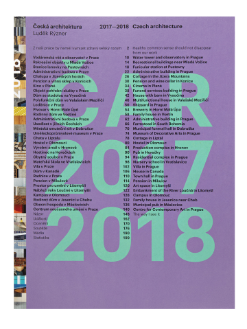 Since 1999 we have been designing the annual Czech Architecture series in which an architect selects the year’s most important buildings. The yearbook has undergone its first redesign after ten years of existence and now, after another five, the small changes brought by each of the guest editors necessitated a change again. As technologies evolve, and paradoxically the quality of received photographs worsens, the author of the new design Bohumil Vašák changed even the paper to support the overall style consistency.