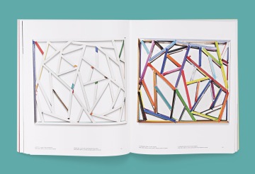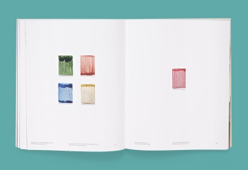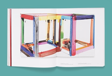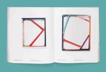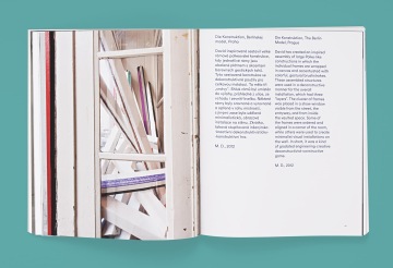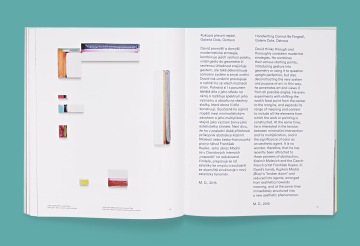 A former member of the obr. [fig.] art group deals in his oeuvre with the subject of a painting in a frame, he works with reversed frames, deprives the frames of the canvases, or he treats the canvas as an object. His monograph therefore takes the form of a bit brutal, thick cuboid with the binding cut to quadrate with the feeling of the frame. The book’s chronological structure reproduces the works more or less proportionately besides texts by Martin Dostál and they are accompanied by photographs of installations that emphasize the paintings’ presentation in space. On the cover, there’s a gesture.
