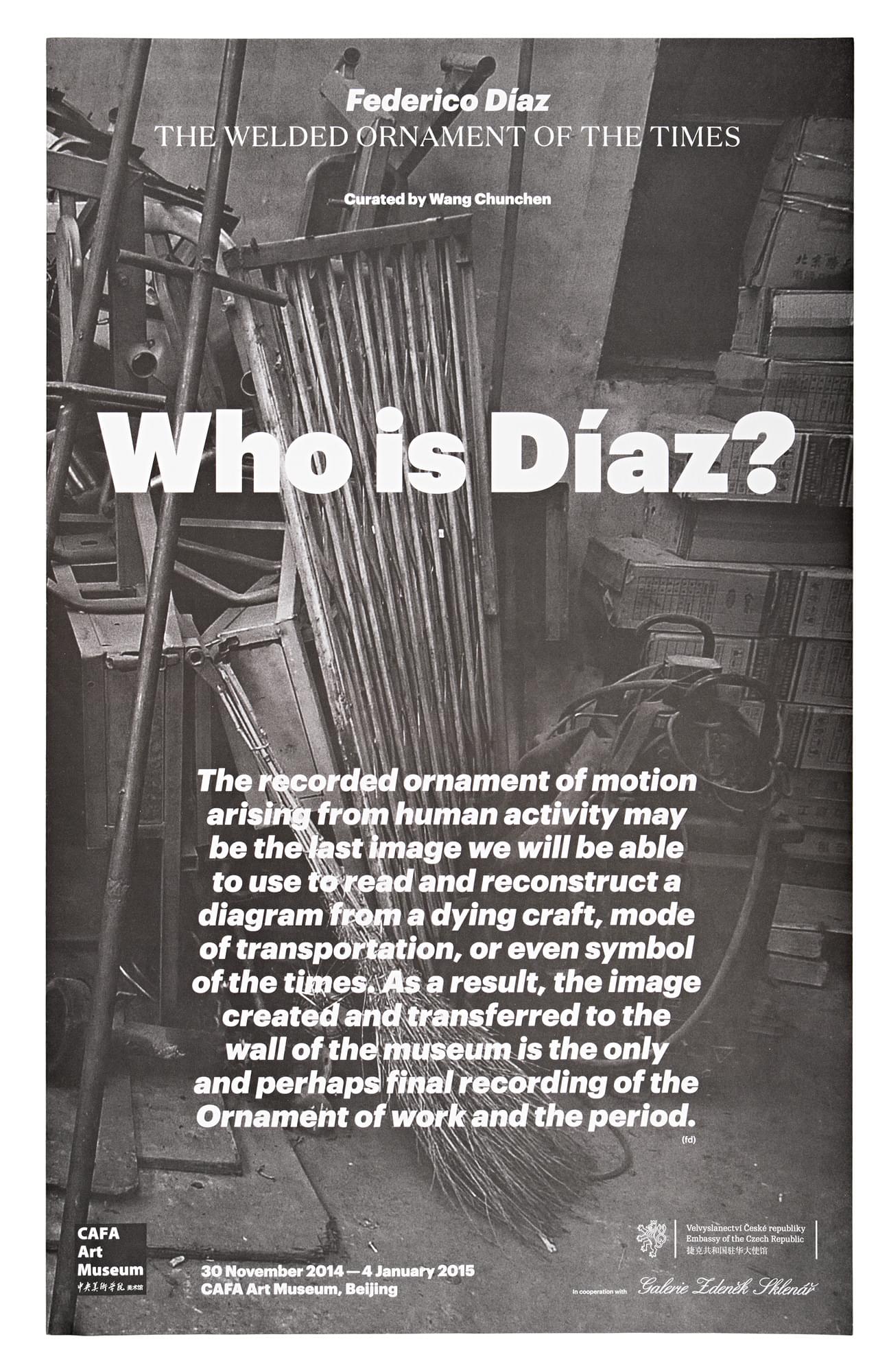 Federico Díaz’s exhibition in CAFA Art Museum in Beijing has launched a tour, which Malich joined in the Finnish Pori to return together to Beijing and Chengdu. Street servicemen of three wheeled cycle rickshaws, one whom takes a rickshaw apart in the gallery where his movement is captured and sprayed on the wall by a robot, had been banned in the meantime together with the rickshaws. It erased jobs of an estimated two hundred thousand people in Beijing. The catalog of an exhibition that reacts to the current events and deals with the topic of a dying craft has a format of a newspaper with the size corresponding to the dimensions of the local daily in every city of the tour.