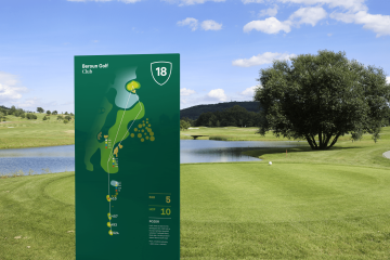 A new club for traditional sport got a logo in the form of a modernized coat of arms and the visual style derived from Beroun ground plans of individual holes. It's always as clear as possible for the player, from cap up to the signage for the holes.
