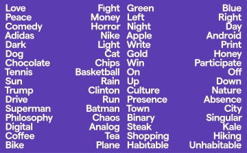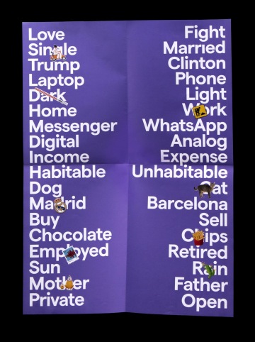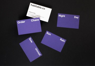 Social theories explain how our understanding of the world is formed by a structure of language that works with seemingly exclusive sets like good/evil, right / left, white/black, man/woman or nature/culture. The digital world is built entirely on the duality of 1/0. Habitable aims to create apps that analyze and learn user preferences, so as a guiding principle of their identity we designed a never-ending game of binaries, either in the form of images or words in custom typeface Matter HBTBL.