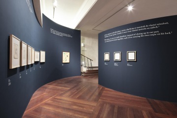 The architecture of the exhibition at the Waldstein Riding School follows the shape of a spiral, an important symbol for the French art group Le Grand Jeu, which is at the center of Prague's introduction to the Paris-based painter’s lifelong work. Similarly, the colors of the printed exhibition guide pages gradually darken to the reader's encounter with the Great Game. As the group declared, "the point is to lose yourself."