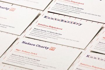 A pioneer of modern charity work in the Czechoslovak universe, Charta 77 Foundation celebrates 35 years of existence in 2014 and its Konto Bariéry [Barriers Account], the oldest continuous foundation project in the Czech Republic, hails 20 years of supporting people with disabilities. We are happy that we could contribute a new visual style that matches their position (and rejects the pushy sentimental standard of the usual charitable presentations). The key to visual style of Petr Štěpán is a system linking many activities of Charter 77 Foundation with its logo, conserving the original square shape of the sign. Variations belonging to more than thirty organizations are connected by punctuation lines that represent barriers in the main, visual, yet textual, logo and by colors that – besides the Czech national colors – denote mainly typing, charter as a document as well as the general tradition of samizdat. In addition to the blue ink ribbons in typewriters and the symbolic red corrective, the Typewriter typeface further conveys the link.
