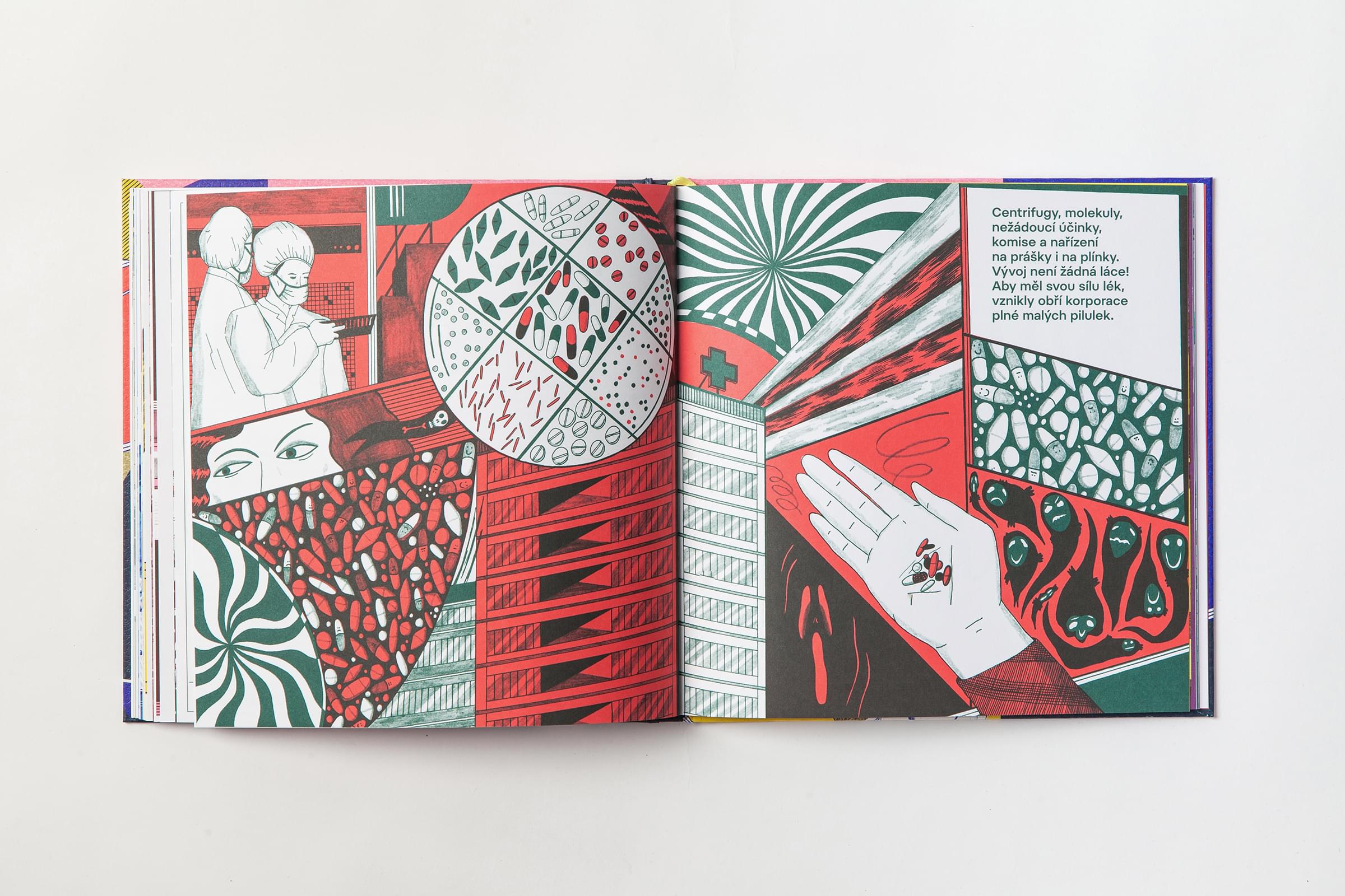 Zuzana Lednická grew up in the family of a surgeon and an internist, so high temperature did not excite anyone, the swimming training always healed the cold, and injections were often served in the kitchen with breakfast. In spite of this, and despite secretly scrolling through the books of war injuries and skin diseases, she retained the love of white coats and, with great joy and dedication, designed – and named – this book. She prepared all the titles and subtitles for the illustrator Nikola Logosová to redraw and the layout inspired by aged children's and medical encyclopedias, with alternating didactic and illustration pages, only waited to be wrapped in the imitation of leather on the cover.
