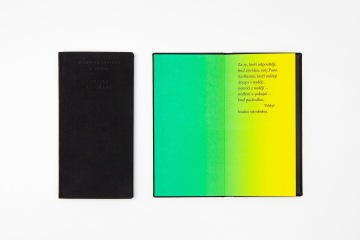 The celebration of the elements and life by St. Francis (translated to Czech by Petr Borkovec) is visually dominated by a color gradient based on the color spectrum visible to human eye. It begins with a birth in the dark and ends with light and reconciliation. The book exists in two forms: a lithographic version of 100 copies, printed by hand in the Lithographic Workshop of Petr Korbelář, supplemented by letterpress text printed and bound in the UMPRUM workshops, and in an offset version of 200 copies, printed and bound by Helbich Printers. A very personal book for Zuzana Lednická, in which she had the opportunity to come up with the whole concept, including illustrations (if you are ok with calling color gradient illustrations).