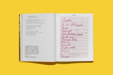 Just the endpapers contain 588 photographs – from the first band selfie that the bassist Mardoša took on stage in 1999, to a concert from the series organized by the Prague’s Dox Center for Contemporary Art on the occasion of the TATA30JS exhibition, to which TATALOG is a companion. Mardoša’s meticulous archiving forms the backbone of an almost four hundred-page publication tracking the history of Tata Bojs from the 1970s grade school setlists to the systematic analogue documenting of the Czech rock and roll routine decades before obsessive documenting entered the mainstream. The tenth chapter is the actual catalogue of the exhibition with which the band definitively settled in the white box of “artrock”.