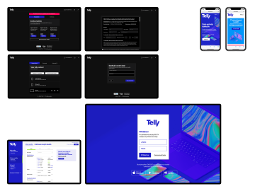 For the new incarnation of the television and the Internet provider Telly, in addition to the name, logo and visual style, we have prepared the overall direction of the digital presentation. Supplementing the identity-defined "wipe" effect, we created a system for product categories, defined the use of mockups on all devices on which Telly applications run, and created a set of abstract motifs for various uses.