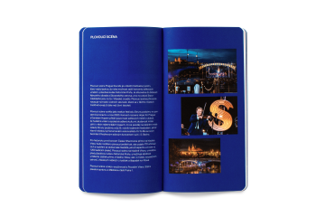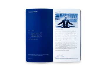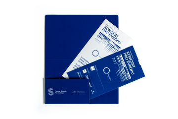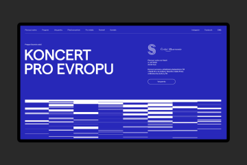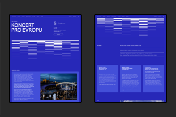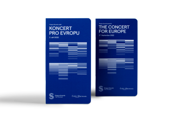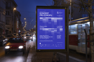 A simple graphic rendering of the so-called Vltava mirror for a concert at the start of the Presidency of the Council of the European Union on a floating stage in the neighborhood of the National Theater and Slovanský Island with a view of Prague Castle.