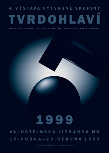 Printed materials for a big exhibition of the art group Tvrdohlaví in the Prague Castle’s Valdštejnská jízdárna use a 3D design based on the original Tvrdohlaví logo designed by František Skála. A head is rising from the ground and getting a whack with a hammer right away.