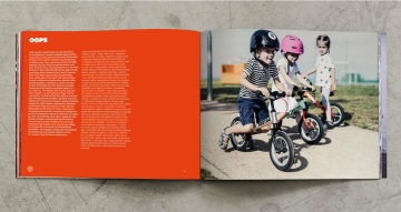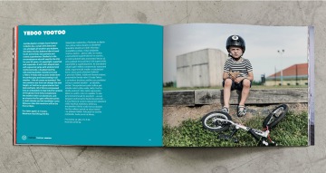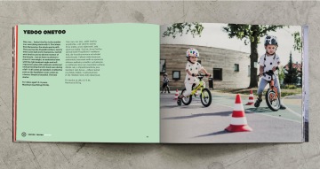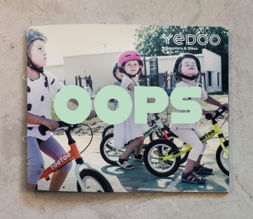 Oops, we did it again! The double “OO” in the line’s name – two dilated pupils, maybe, or two thick tires that every puddle turns into a street flusher – all these connotations fit the inscription on the young racer’s frame. Oops is a cute expression of astonishment and the uncertainty of little explorers who leave the stability of three wheels, experiencing the first buzz of riding on two. We used it to name a new line of Yedoo balance bikes and to the popular model TooToo added two new model names – OneToo and YooToo. The play with wheels continues in the graphics, which – apart from ice cream colors of lime, cotton candy, red orange or mint – is characterized by super-bold custom font created for Oops by Marek Pistora. The typeface seems inflated, with a cute, big head and only capital letters, making the balance bike look like a miniature race bike for adults or possibly classic car from Le Mans, Cannonball Run or Silverton. Said one user, “The balance bike is great. You don’t have to pedal – you just swing your legs!” As always with Yedoo, we created a catalog for Oops – copywriting, photos, graphic design, print production, everything.