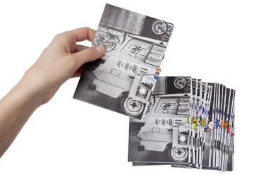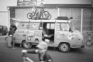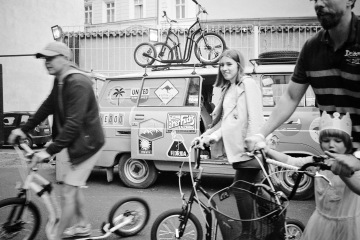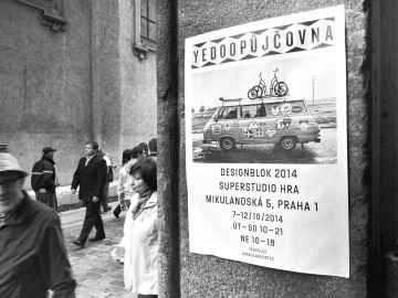 "Get a scooter, kid! Scooter for the lady! Slow down round the church, and spare my hand!" Two years’ vacation forever. Prague was another cross on the infinite map of village greens, public pools, “samoobsluha’s” and fire ponds of raspberry fountain soda in beer mugs. Landscapes that avoided suffocation by the idyll of interlocking pavements and DIY-store life replacements. Yedoorental topmost stop: Designblok Superstudio Hra, Mikulandská 5, Prague 1. City of Prague on a scooter, different speed, different direction. The girls could break a leg, fathers bragged and a lady from Řásnovka took home three sacks of potatoes. When are you comin’ back, I'd tell neighbor, she said. My Míla used to drive an ambulance just like this... A few hundred people toured Designblok on the scooters and thousands of postcards, stickers and poster-maps with them. Everything to be found beautifully at dvekolaadost.cz