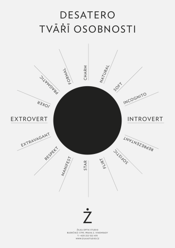 Hook over Z in the name of the Prague’s studio known for its mischievous rims narrowed to a seeing pupil. It watches over the whole alphabet with dots instead of hooks, a bit mysterious and immediately recognizable language for all printed materials of the studio. The first campaign goes with its black and white strictness and symbolism of a magic eye in the Old Testament-y terse slogans, whose ambiguous prophecies carry a permanent challenge to fate. Look. See through. You'll see.