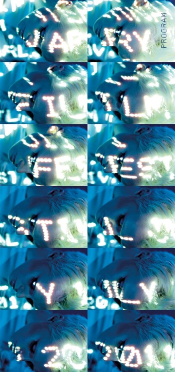 Plakáty a tiskoviny složené z filmových sekvencí a fotografií, vytvořených typografickou projekcí na tvář a tělo.