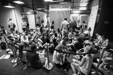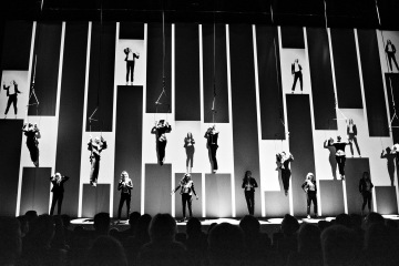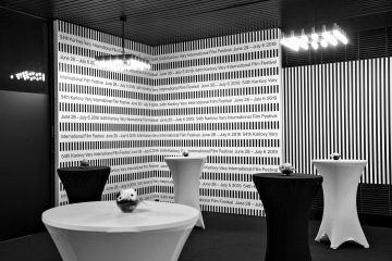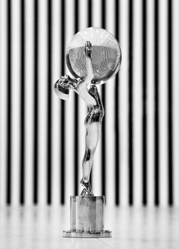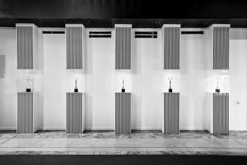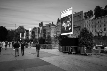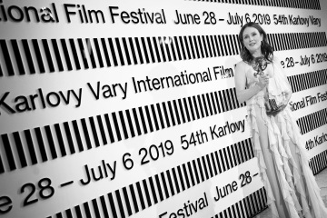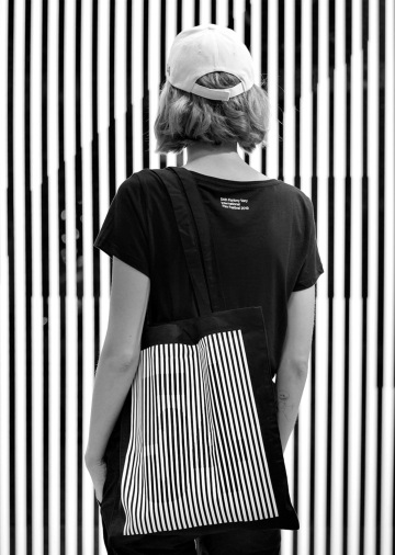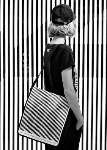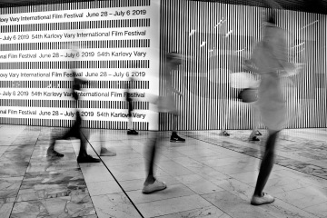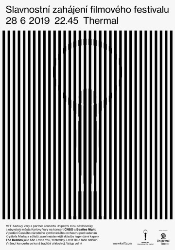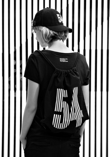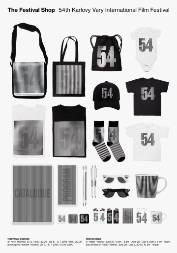 Vizuál 54. ročníku KVIFF pokračuje v jednoduché typografii a hře s čísly i viditelností. Po vzpomínce na celuloid z minulého ročníku se posunul v čase, snímkování opustilo filmový rámec a přerodilo se v pruhy. Někdo v nich najde odkaz k TVL, neboli rozlišení analogové televizní obrazovky, někdo k Šíleně smutné princezně. Někdo zebru. Nebo jsou to zas jen císařovy nové šaty? „Vizuál pro KVIFF musí blikat, roztančit oči, znejišťovat, hypnotizovat optickou iluzí jak filmové plátno – a stejně jako na filmové plátno je třeba se na něj dívat trochu s odstupem,“ rozvlnil se jeho autor Jakub Spurný. Všudypřítomné pruhy se tradičně propsaly z plakátu do festivalové architektury, animací, projekcí a merchandisingu, až k nejvděčnější fázi naší práce – do spontánní módní inspirace návštěvníků festivalu.