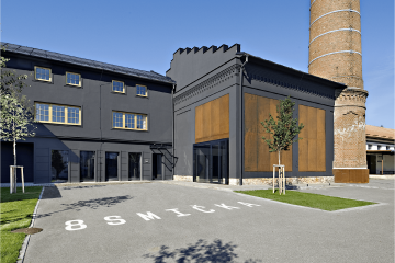 Logo humpoleckého kulturního prostoru sleduje podobnou logiku jako další značky Aleše Najbrta pro umělecké instituce – jednoduchou a výraznou formu, která musí obstát v proměnlivém vizuálním toku, jenž ji bude obklopovat, a zároveň mu nemá stát v cestě. Vedle nečekané hry s názvem (proč ne O8MIČKA?) pak volbou písma odkazuje k industriální minulosti areálu.