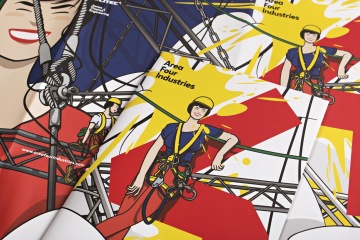 Drsnější než rokenrolové hvězdy, které táhnou od města k městu a nechávají za sebou šňůru zlomených srdcí a nevyplněných formulářů o vyživovací povinnosti, jsou jenom riggeři. Postaví pódium, užijou si koncert, do šesti do rána balí konstrukci, pak skočí do kamionu a jedou na další štaci. A riggeři jsou zákazníci Area Four Industries, aliance, která tvoří největšího výrobce vybavení pro eventy na světě. Půdorys nového heavy loga A4I reprezentující čtyři kmenové společnosti postavil Bohumil Vašák z dílů tak, aby šlo položit nebo postavit na hlavu, jako praktikábl nebo jednotka nosníku. Logo se poprvé představilo na frankfurtském veletrhu Prolight+Sound ve stánku, který navrhl s architektkou Šárkou Zikovou a kde šestimetrové obrazovky promítaly vizuální styl s maskotem-riggerkou nakreslenou Martinem Grochem.