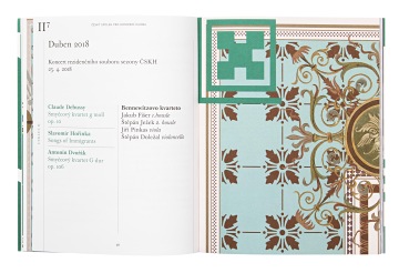 V naší třetí sezoně pro Českou filharmonii se věci trochu komplikují. Jak objevujeme další pestré vrstvy Rudolfina, uvolňují se motivy interiérové výzdoby z mřížky, množí se jejich zvláštní setkání a dostávají se do čím dál složitějších vztahů. Přibývá klonování. Mýtické obličeje hovoří samy se sebou. Ptáci neklidně poletují v hustém propletenci popínavých stonků, které stejně tak mohou být záznamovými křivkami skladeb jako konverzací v saloncích. Doba postoupila a zarůstající neorenesanční malby začínají překrývat jednoznačně digitální znaky.