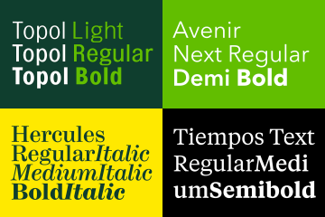 Písmo: Avenir Next, Tiempos, Hercules, Topol,
