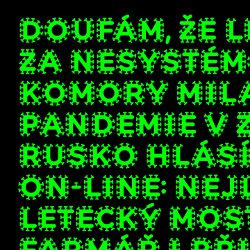 Uvádíme Arial dneška. Jmenuje se jednoduše COVID a jeho první, hodně zasažený řez Infected je k dispozici zdarma k všestrannému nasazení. První mu podlehly naše vlastní stránky. Zajímá nás, kam se rozšíří. Představujeme si ho na vývěskách o mytí rukou, na románech napsaných v karanténě, referátech o netopýrech na Zoomu nebo infografikách o počtu vyléčených. A zejména na oznámení ukončení pandemie a návratu života všude tam, kam patří. Další řezy budou následovat.