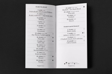 To, co začalo očištěním a návratem k značce Libora Fáry z 60. let, se nakonec rozvinulo do nového vizuálního stylu a systému pro všechny tiskoviny. Obvyklé programové skládačky nahradily měsíční brožury, s novým písmem se obnovily polepy na fasádě, orientační systém i reklamní a upomínkové předměty. Legendární pražská scéna, kde se zásadní představení vždy odehrávala ještě dávno potom, co padla opona (=na baru), je dlouhodobě taky nejstylovější, se souborem jednou nohou v módním časopise, a v poslední době ji vizuálně charakterizuje především široce oceňovaná, výtvarně nasycená scénografie a kostýmy. Plakáty si tak osvojují formu pro zábradlí specifické jevištní krychle a grafická prezentace koncentruje klasickou divadelní slávu, líčení a pózu do současné podoby smyslného editorialu. Na vizuálech probíhá unboxing rekvizit z aktuálních představení, skenovaných a zabstraktněných ve 3D a nadreálně zintenzivněných gelem tekuté digitální přitažlivosti. Kdo vedle klauna z To poznal gumáckou masku Václav Havla? Princip amalgámu svůdností v jádru Starého města pokračuje v citacích z představení vyvedených elegantním písmem Sabon, které Jan Tschichold v 60. letech vyšlechtil z oživeného serifu ze 16. století.