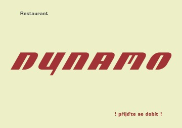 Plakát pro restauraci Dynamo, pro kterou jsme vytvořili malý vizuální styl a slogan „Přijďte se dobít!“. Autory interiéru jsou designéři studia Olgoj Chorchoj. Dobře a nepříliš draze tam vaří.