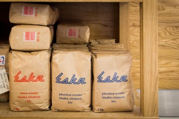 Nová, odlehčená restaurace Ambiente, s pekárnou a severským přístupem k české kuchyni, otevřela v Karlíně. Eska, pro někoho kolo z dětství, pro jiného kryptogram pro Skandinávii (eSKá), naplňuje bývalý industriální prostor nově touhou dělat věci neprůmyslově, řemeslně, s osobní péčí, trpělivostí a divokým kořením z lesa. Princip oživovaní, vaření z odpadu a šlupek, míchání a kvašení se projevuje i v logu. Nostalgie po 70. letech, vývěsních štítech Ovoce Zelenina a elektro obalech zahřívá pekárnu do ruda rozzářeným neonem. Otevřenou kuchyň a odhalenost prostoru následuje i nepokrytě deklarované složení na výrobcích a obalech a vizuální styl ze stencilové verze klasického písma Gill Sans. Nakonec jsme doporučili i písmomalířku Petru Dočekalovou, aby ručně psané tabule k něčemu vypadaly.