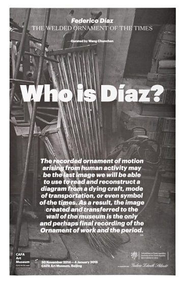 Výstava Federika Díaze v pekingském CAFA Art Museum zahájila turné, ke kterému se ve finském Pori připojil Malich, aby se spolu vrátili do Pekingu a Chengdu. Pouliční opraváři nákladních kol, z nichž jeden v galerii kola rozebírá, aby byl jeho pohyb snímán a robotem sprejován na stěnu, byli mezitím v centru Pekingu zakázáni i s koly, což zbavilo práce odhadem dvě stě tisíc lidí. Katalog výstavy reagující na aktuální situaci a tematizující odcházející řemesla má tak formát novin, jejíž velikost kopíruje rozměr místních deníků.
