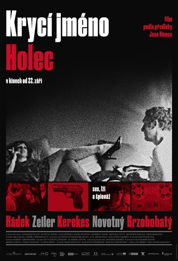 Plakát k hranému filmu o režisérovi, který se s krásnou dívkou po boku snaží v roce 1968 vyvézt z Československa záběry Pražského jara, volně založeném na námětu, podle kterého Jan Němec natočil před několika lety autobiografický paradokument Holka Ferrari Dino, staví na zvětšených fotografiích ze sledovaček hlavní dvojice a roztříštěné černočervené estetice filmových i brožovaných krimi 60. a 70. let.