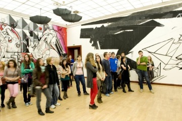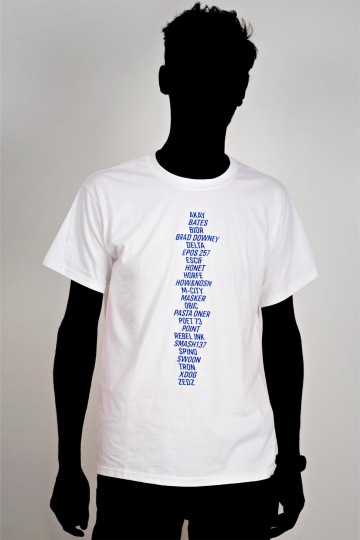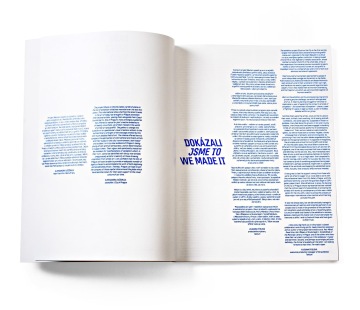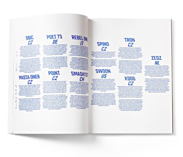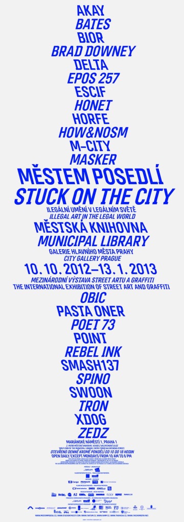 Jako graffiti samo, které je předmětem pražské výstavy, stojí vizuál na písmu a jménech. „Vocucané“ rohy písma Brauer Martin Vácha zhranatil a spolu s obrácenou kurzívou v 3D efektu kopírují strukturu města.