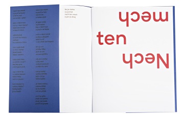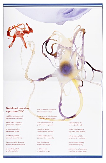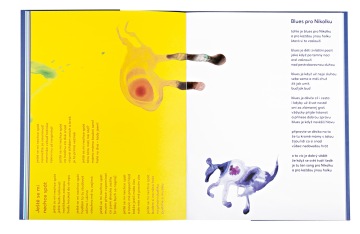 Petr Nikl odevzdal svoje ilustrace k básním Michala Bystrova na čtvrtkách, které se příliš neliší od papíru, na kterém jsou teď vytištěné. Inspirovaly skicák nebo školní sešit v modrém obalu, v němž Zuzana Lednická směrem textu pomáhá čtenářům proměňovat skvrny z Rorschachova testu na pacienty, koně nebo slony s dlouhým chobotem. Třetí spolupráce s nakladatelstvím Meander tak děvčeti, které vždycky listovalo knížkami odzadu, umožnila konečně mít knížku s patitulem vzhůru nohama.