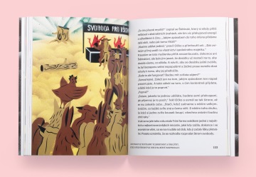 Asi znáte Farmu zvířat. Zvířata tam svrhla farmáře, moci se chopila prasata a věci se pak ubíraly velmi nepěkným směrem. Nebyla to ale jediná farma, která prošla přerodem. I jinde zvířata svrhla farmáře, ustanovila si vlastní vládu, do věci se vložily lišky... Té farmě se říkalo Tržní farma. Podobu satirické reakce na poslední finanční krizi určuje maximální prostor pro nebojácné ilustrace, 26 černobílých a 16 barevných, které nastříkala Eva Maceková.