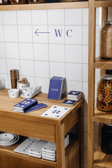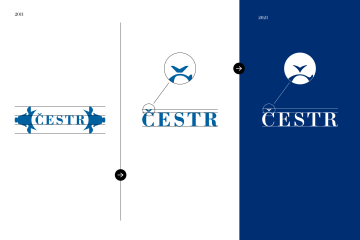 Po rekonstrukci se Čestr stal víc restaurací než jídelnou a tomu odpovídá i jemný posun grafického řešení. Hlava české stračeny zůstala nadále značkou Čestru, modrá barva ztmavla, Bodoni nahradilo písmo New Paris a ornamenty na cibulákovém nádobí jsou nenápadnější.