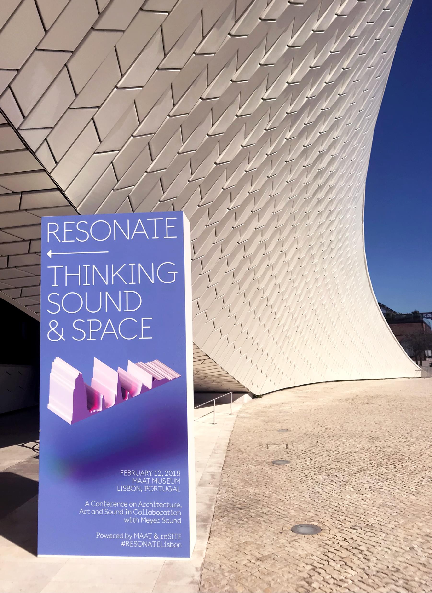 Pro všechny, které zajímá akustika a architektura přivezlo 12. 2. museum MAAT a reSITE na jednodenní konferenci do Lisabonu tvůrce současných prostorů pro hudbu a další zvuky. Hlavním vizuálním motivem akce se tak stala křivka záznamu vysloveného slova Resonate převedená do 2D/3D tvaru. Zvuk coby iluze hmoty je základním kamenem hry, v níž by si každý mohl nahrát vlastní zvuk a z takto vytvořeného stavebního materiálu vystavět ulice, města a celé světy.