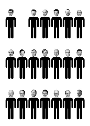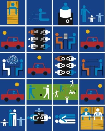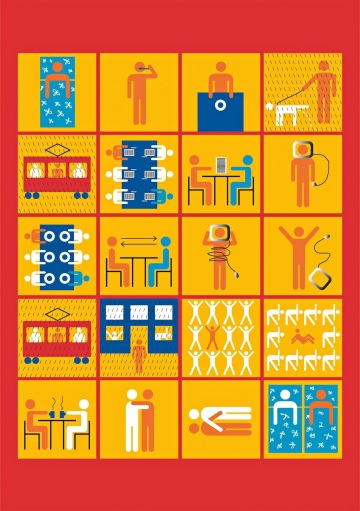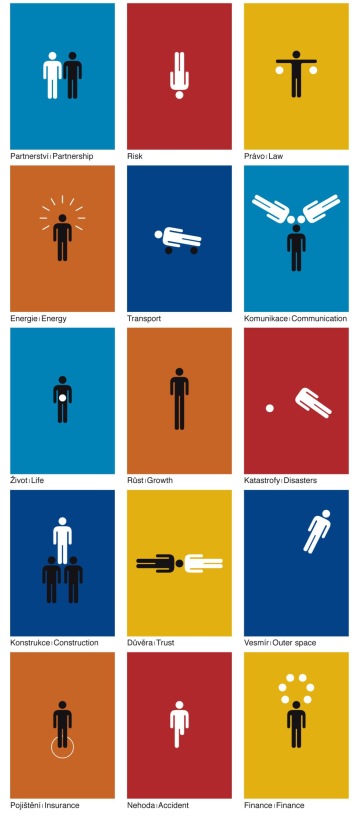 Rozsáhlá práce na sérii ilustrací pro výroční zprávu francouzské zajišťovací společnosti SCOR. Vytvořili jsme minimalistické ilustrace s motivem jednoduchého loga člověka na témata zadaná společností SCOR. Vznikla výroční zpráva s těmito ilustracemi a naší grafickou úpravou a po ní výstavy v Praze, New Yorku, Brně a Vídni, které tento projekt představily v různých podobách. Vytvořili jsme různé komiksy, samolepky i trojrozměrné parafráze jednotlivých témat, které rozvinuli tuto zakázku do jakéhosi volného projektu inspirovaného původním zadáním francouzského klienta.