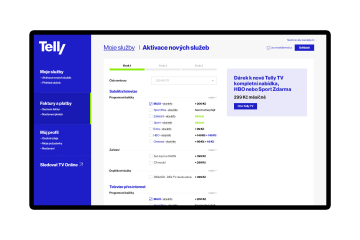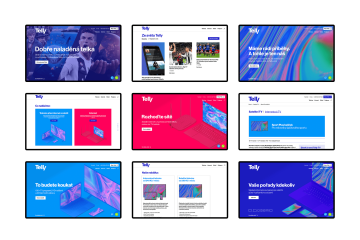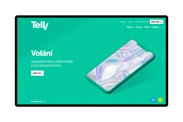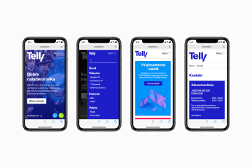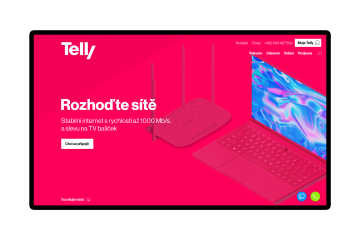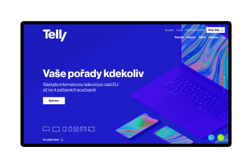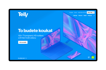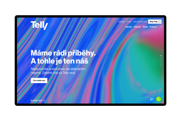Pro novou podobu televize a poskytovatele internetu Telly jsme krom názvu, loga a vizuálního stylu připravili i celkový směr prezentace na webu a v dalších digitálních prostředích. V nich jsme vedle identitou definovaného efektu „stíračky“ vytvořili systém pro základní produktové kategorie, definovali použití mockupů u veškerých zařízení, na kterých aplikace Telly fungují, a vytvořili sadu abstraktních motivů pro flexibilní použití.