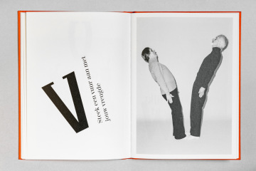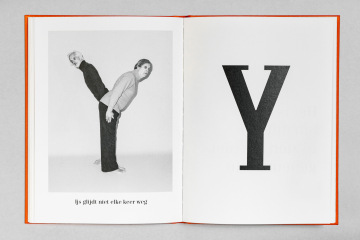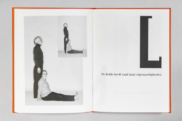 Kniha ALFABET holandského performerského dua Thomas & Ruhller. Tito světově proslulí umělci se rozhodli znázornit svými těly, vlastním písmem a krátkými texty všechna písmena abecedy.